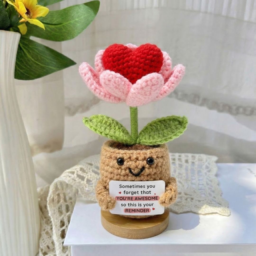 用這款「情緒支持心形花盆」為他人點亮一天,這是一個小小的、手工編織的小夥伴,陪伴您度過人生的起起落落。盆中央綻放著鮮豔的心形圖案,花盆上還綴著最甜美的微笑,這盆植物將獻上擁抱與希望,並溫柔地提醒對方:他們真的很棒。這是一份發自內心的禮物,獻給所有需要生活中多一點陽光的人。